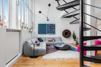 Discover this stunning loft-style apartment in the heart of Montmartre, filled with natural light thanks to its large picture window, offering an open view and creating a warm, contemporary atmosphere.